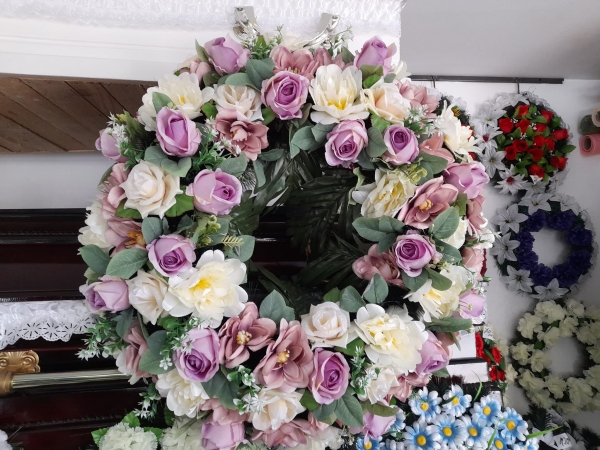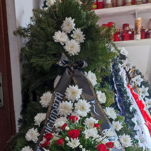 Executam si comercializam jerbe, coroane si cosuri cu flori naturale si artificiale pe suport de brad natural si artificial.