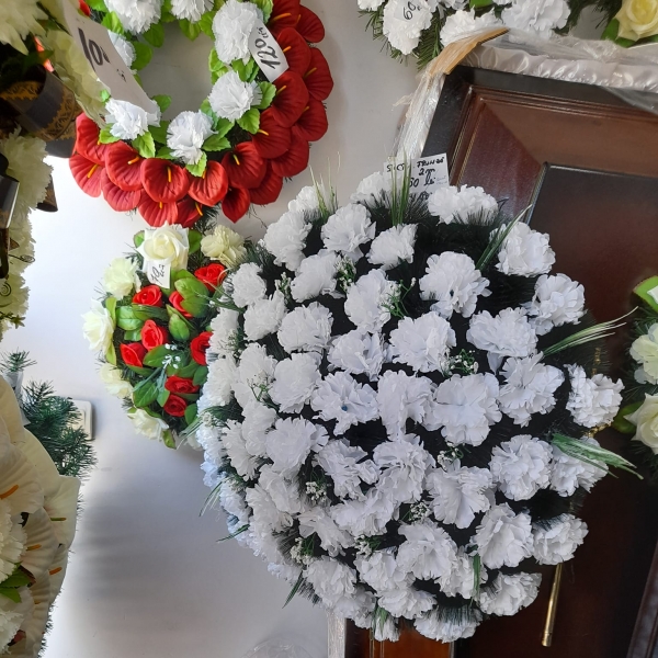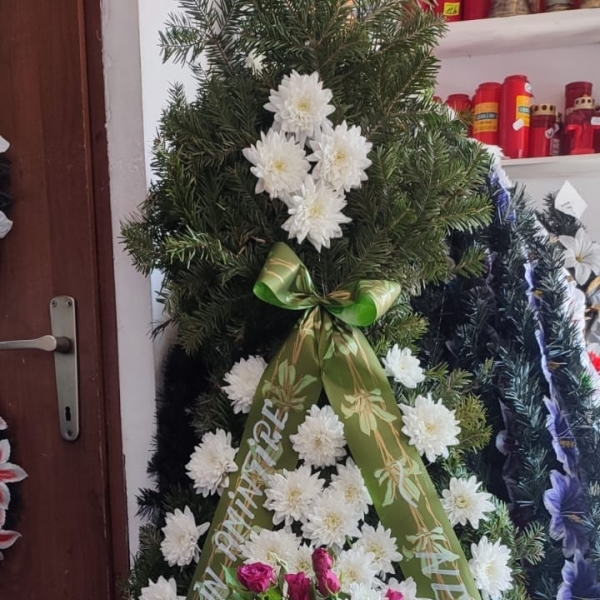 Executam si comercializam jerbe, coroane si cosuri cu flori naturale si artificiale pe suport de brad natural si artificial.
